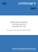 La revue Astérisque a été créée en 1973 à l'occasion du premier centenaire de la SMF. Revue internationale de haut niveau, Astérisque publie en français et en anglais des monographies de qualité, des séminaires prestigieux, ou des comptes rendus de grands colloques internationaux. Les textes sont choisis pour leur contenu original ou pour la nouveauté de la présentation qu'ils donnent d'un domaine de recherche. Chaque volume est consacré à un seul sujet, et tout le spectre des mathématiques est en principe couvert. Astérisque publie 7 à 8 volumes par an, et consacre chaque année un volume aux notes du Séminaire Bourbaki.