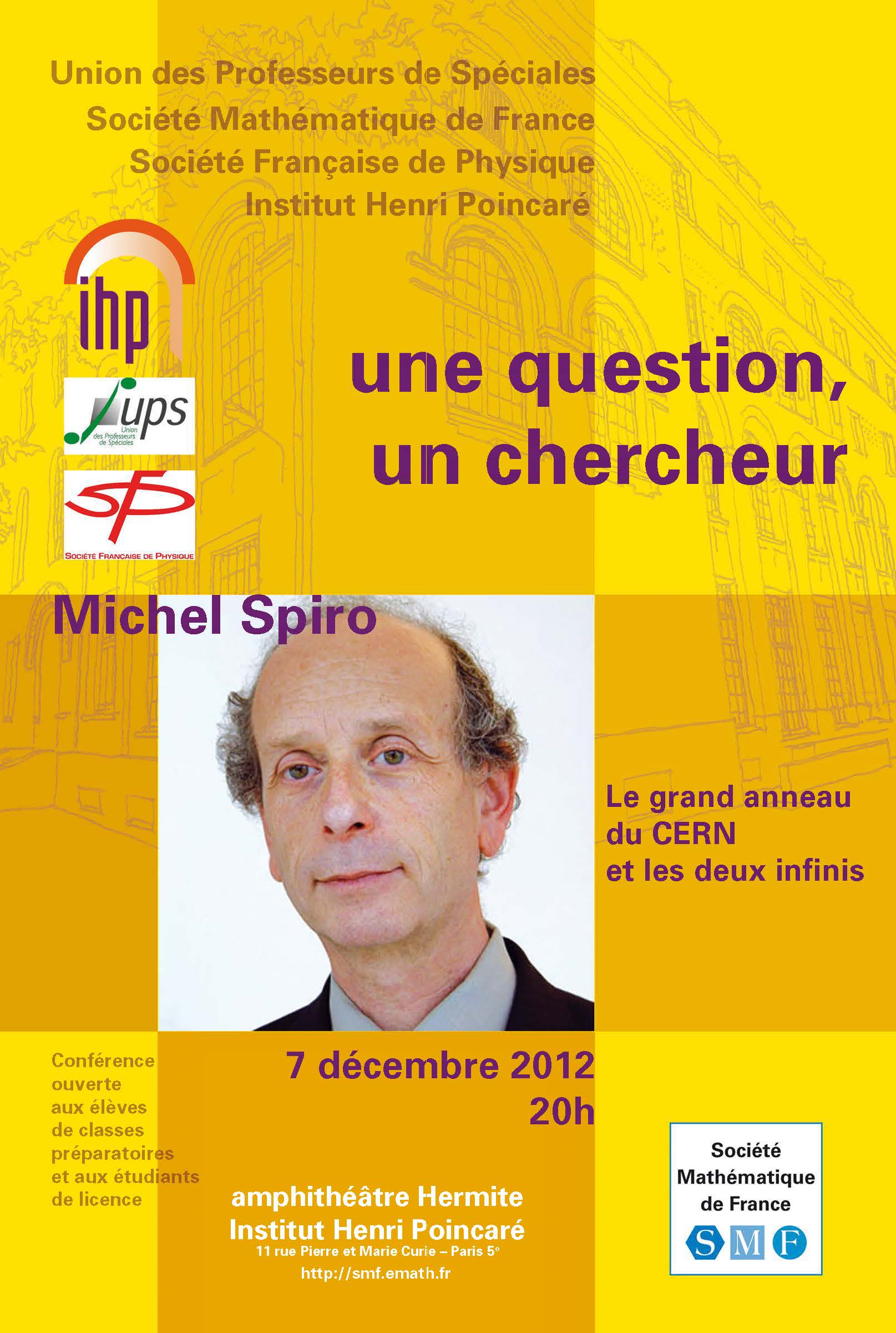 Organisée par : L'Union des Professeurs de Spéciales (UPS), la Société Mathématique de France (SMF), la Société Française de Physique (SFP), l'Institut Henri Poincaré (IHP)